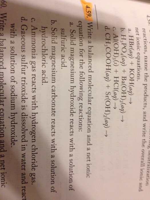 Solid zinc is added to an aqueous solution containing dissolved hydrogen chloride to produce gaseous hydrogen that bubbles out 2. Solid magnesium metal reacts with liquid water to form solid magnesium hydroxide and hydrogen gas. 3. Gaseous ammonia reacts with gaseous oxygen to Standards ... View Doc