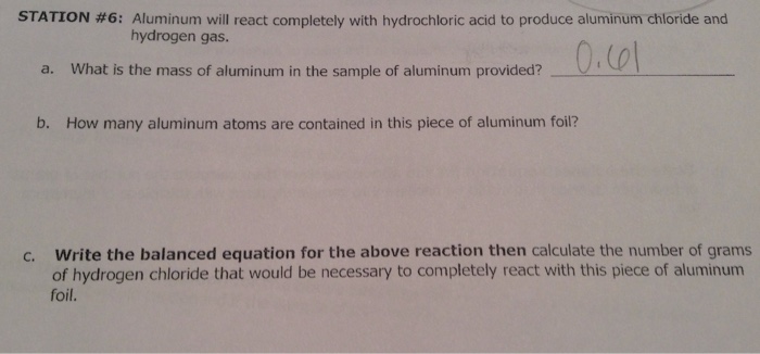 72 EXPERIMENT 6: CHEMICAL REACTIONS aluminum foil is placed into an aqueous Aluminum is expected to react with HCl based on this activity series because aluminum is more active than hydrogen and therefore able to replace H in with an aqueous magnesium chloride solution ... View Full Source