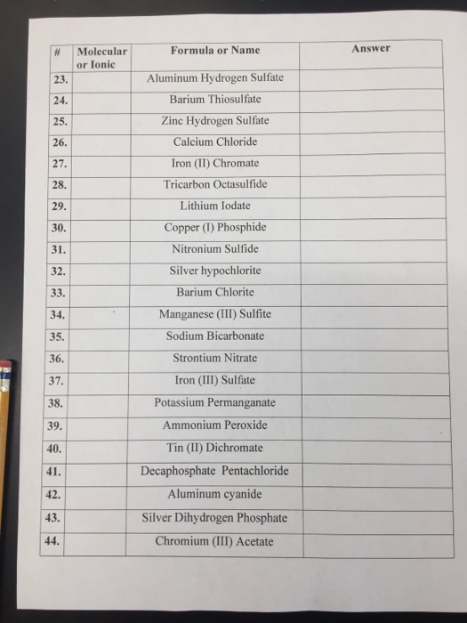 Worksheet #1: Writing And Balancing Formula Equations